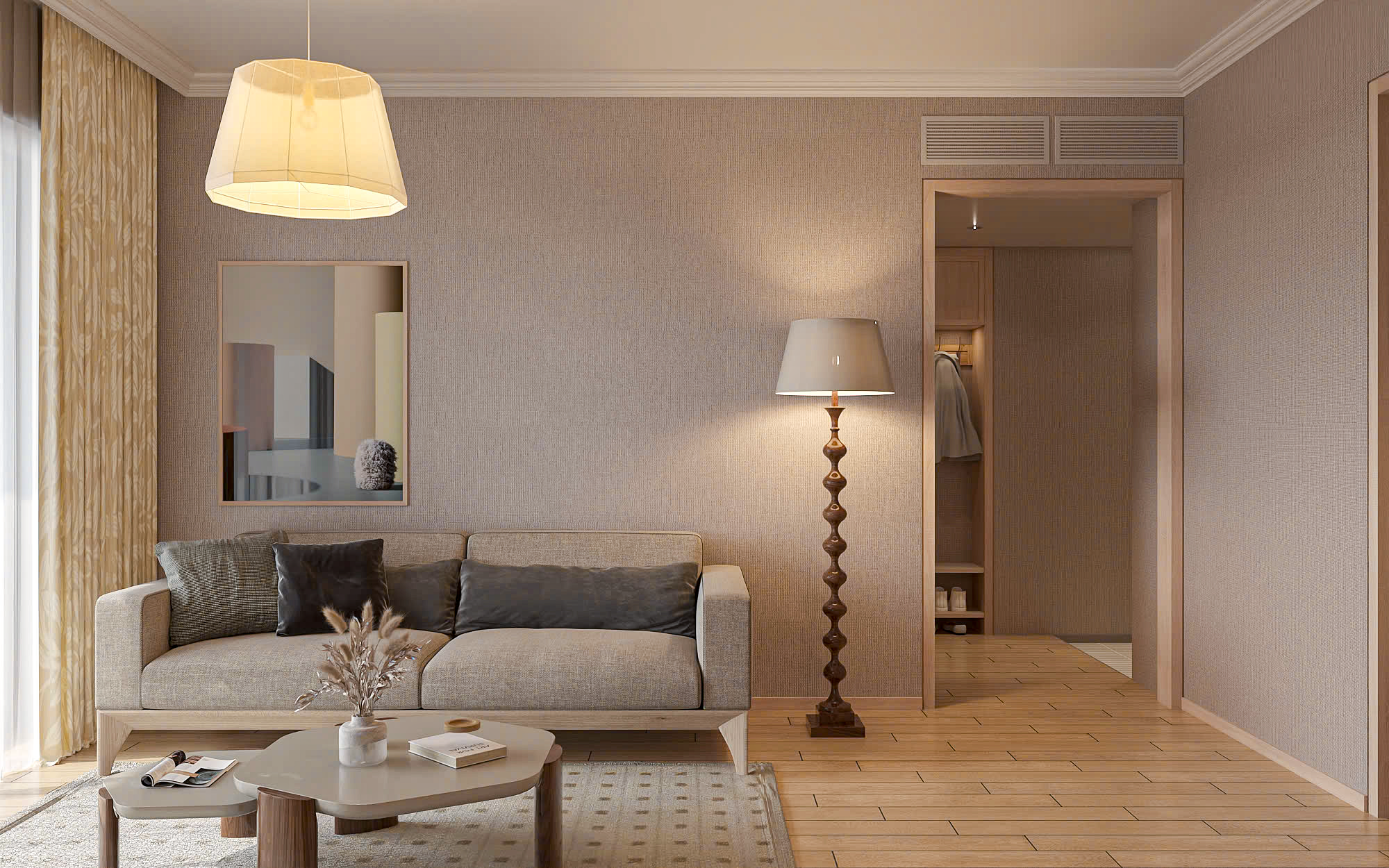 Daewoo Hanoi Hotel showcases a Modern Contemporary design style, harmoniously blending sophistication with functional comfort. The overall aesthetic is defined by a palette of beige, soft grey, and warm wood tones, creating an inviting yet luxurious ambiance. Throughout the interiors, materials such as natural wood, marble, and warm lighting are thoughtfully used to evoke refinement and warmth.