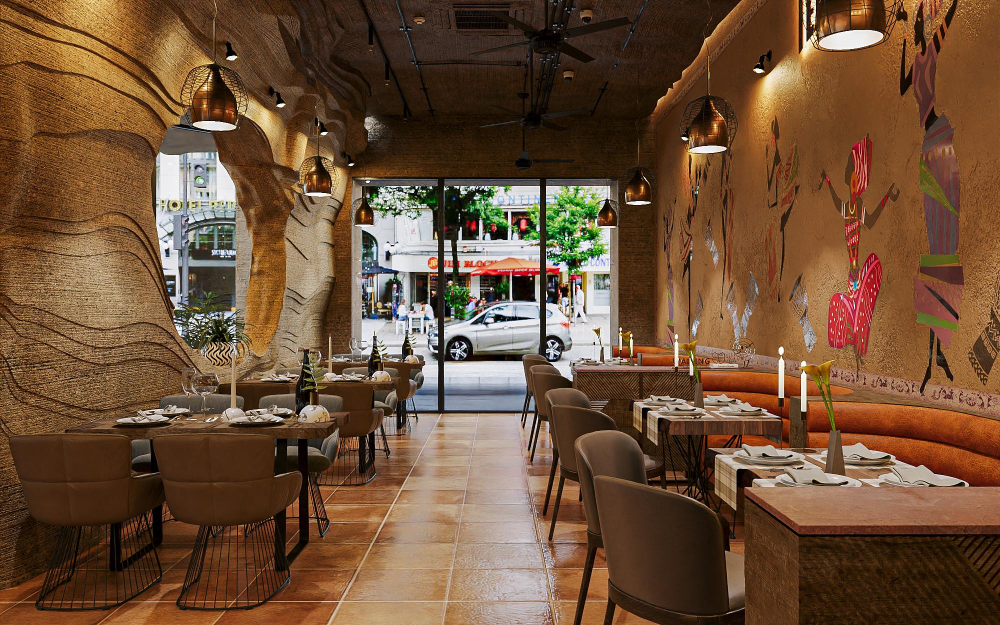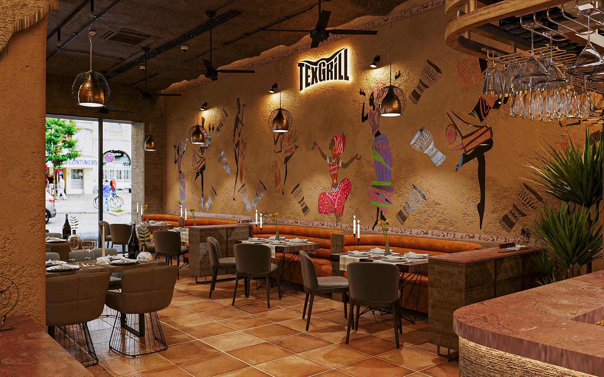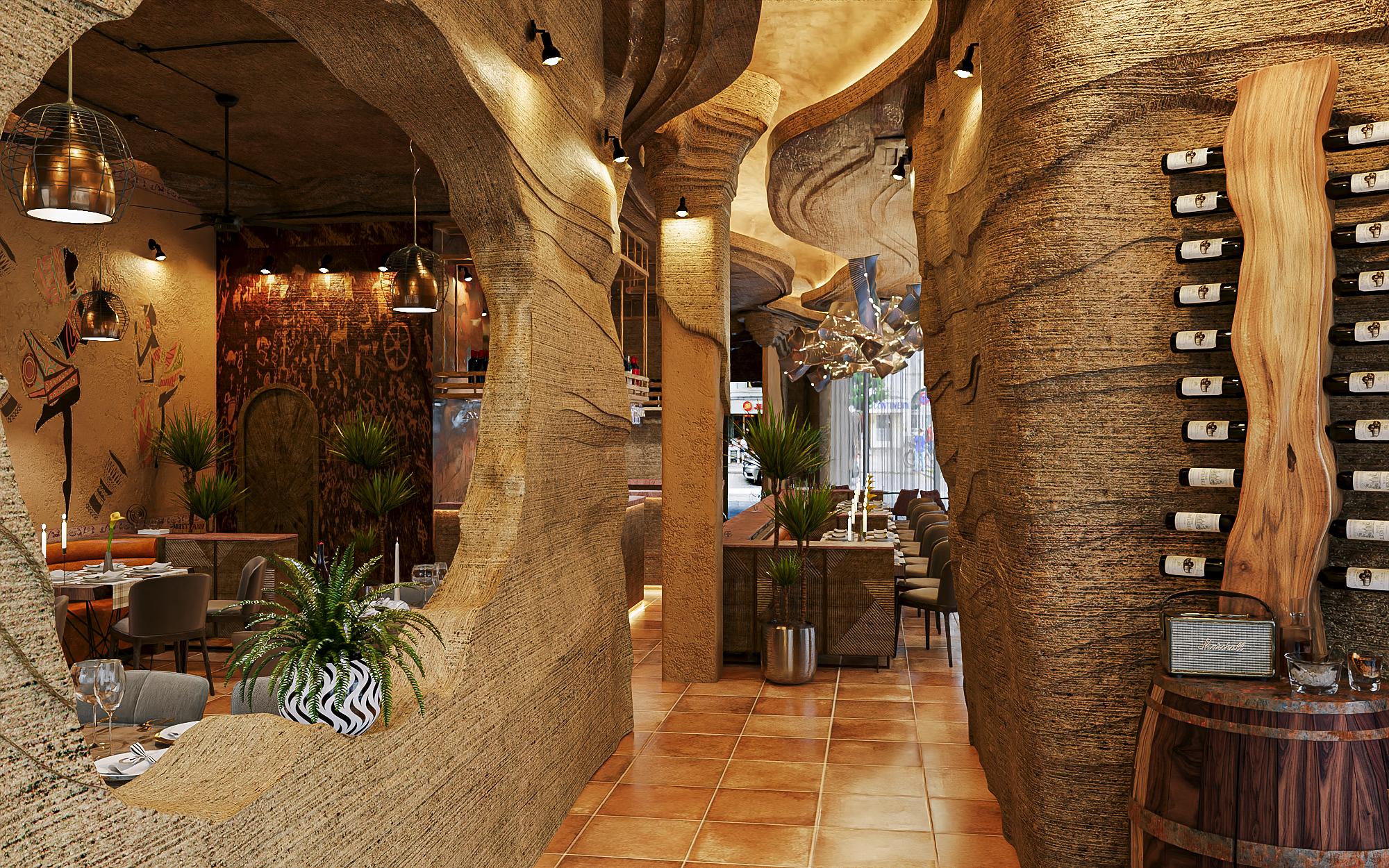 TexGrill Restaurant mang đến trải nghiệm ẩm thực độc đáo thông qua không gian thiết kế Caveman Style – lấy cảm hứng từ hình tượng hang đá nguyên sơ, kết hợp tinh thần mộc mạc và nghệ thuật hiện đại.